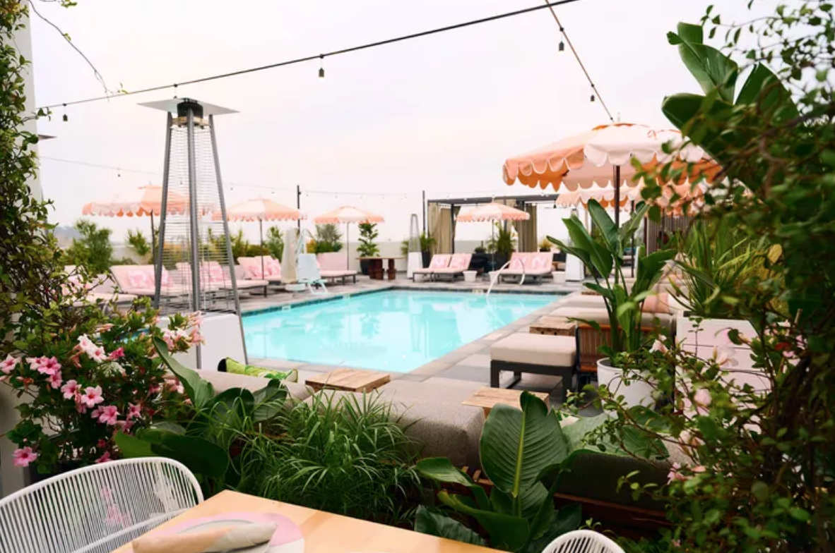 The obvious choice for lunch in Culver City is the Canopy Club, an all-day poolside restaurant located on The Shay’s rooftop. Inspired by the vibes of Palm Springs and Miami, the atmosphere here is bright and exciting. Pink walls and pool umbrellas are complemented by lots of plush greenery throughout the space. Guests are encouraged to kick back, relax, and enjoy the sweeping views of Culver City and DTLA — cocktail in hand, of course.