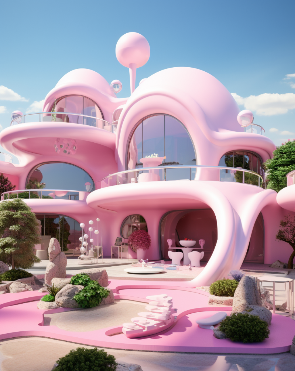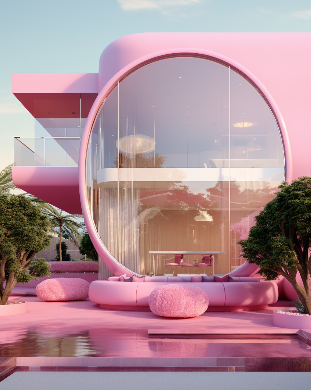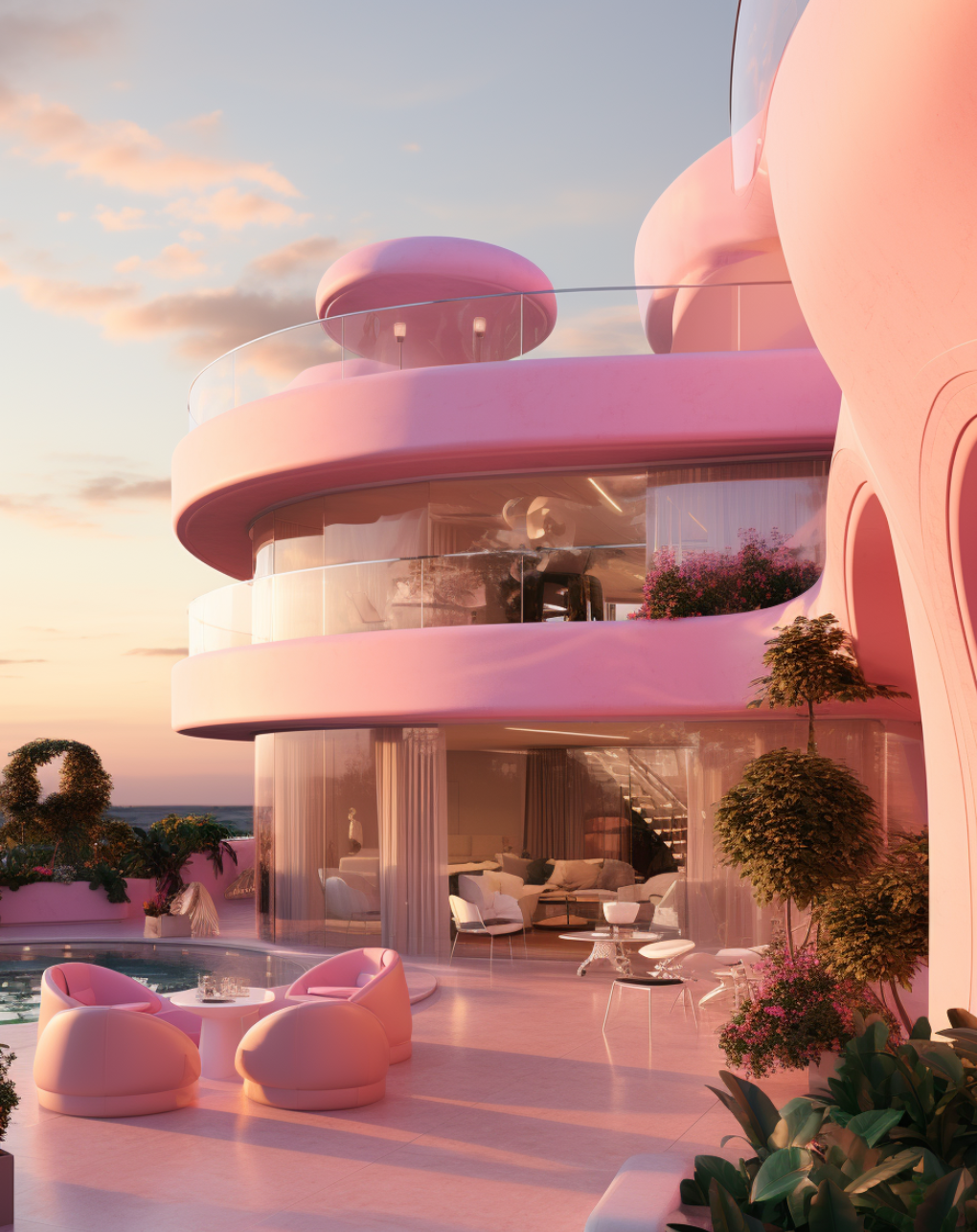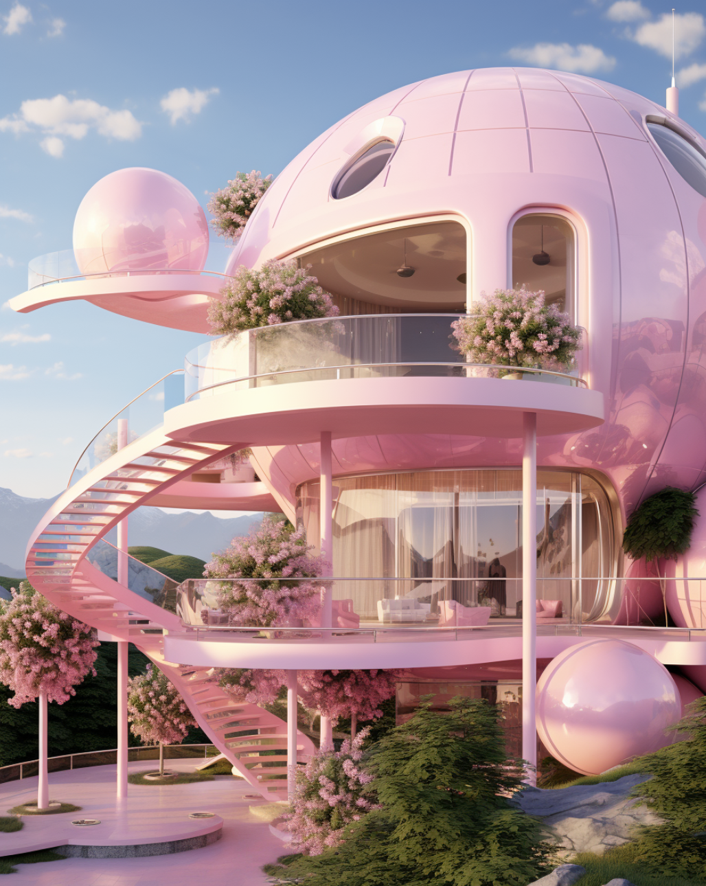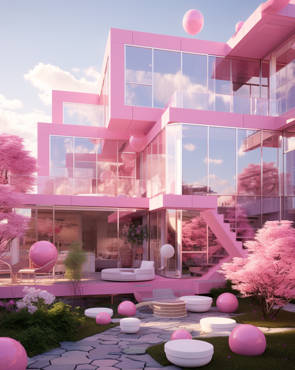 Inspired by the monstrously popular Barbie movie, this series of AI-generated architectural renderings brings forth a new vision of Barbie’s Dreamhouse.