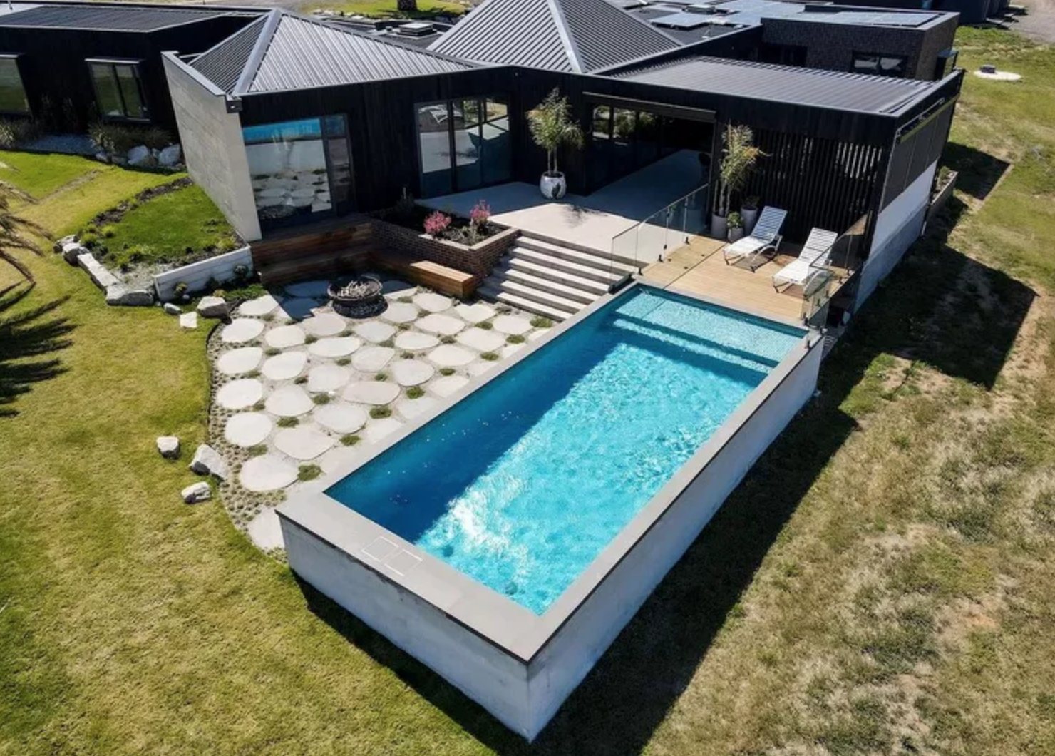 This may look like an in-ground pool, but it’s really above ground and features an expansive deck built around it. Even though the deck and fence are costly, it’ll still save you the hassle of installing an in-ground pool yet you still get the look. An above-ground lap pool like this one can start around $15,000.