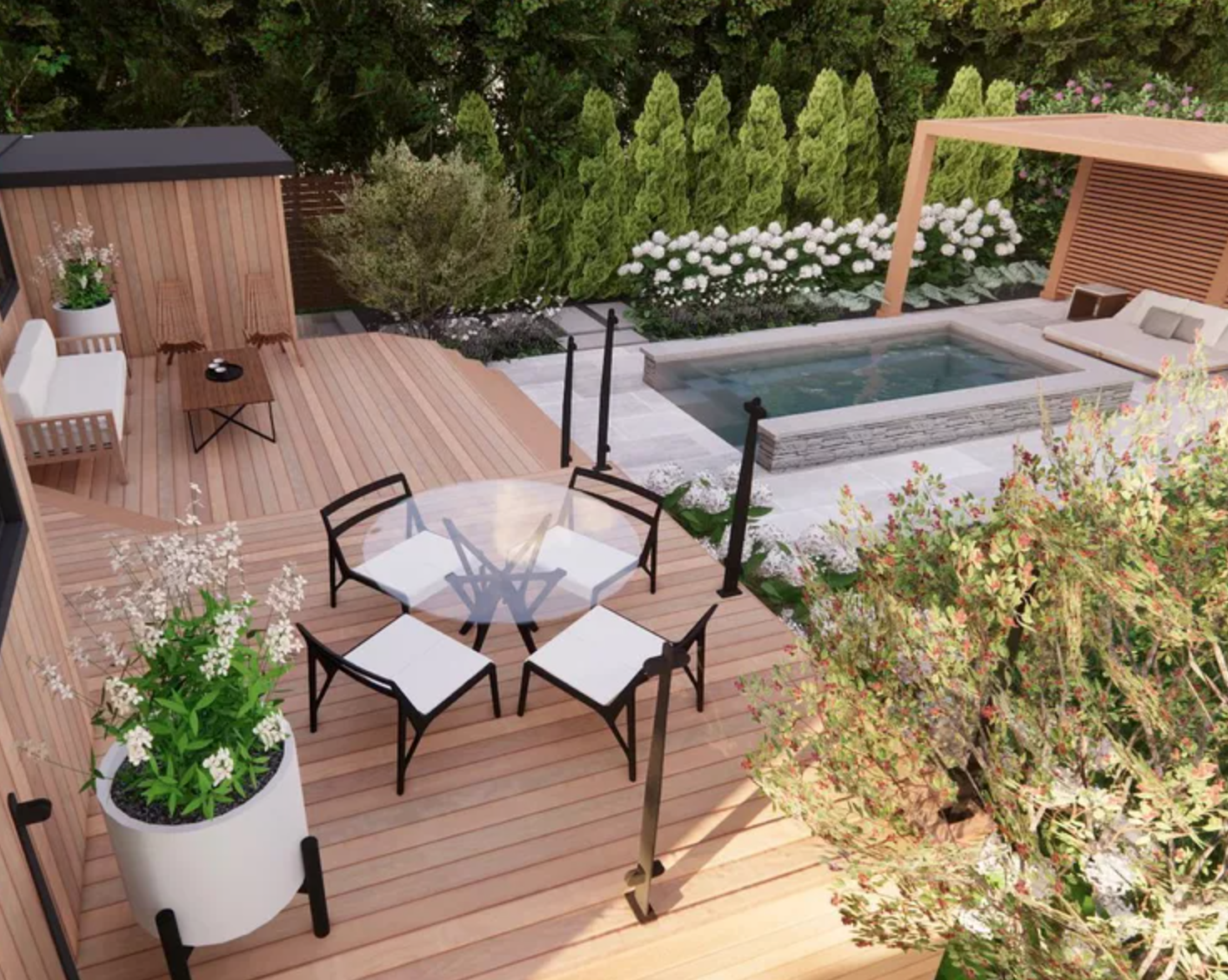 With an above-ground pool like this, you can host summertime gatherings for your friends and family. The deck has plenty of space for people to enjoy food and drinks, and the adjacent gazebo is the perfect place to lounge during summer days. A pool like this is a little more costly since it’s in-ground; a concrete plunge pool like this one can start around $20,000.