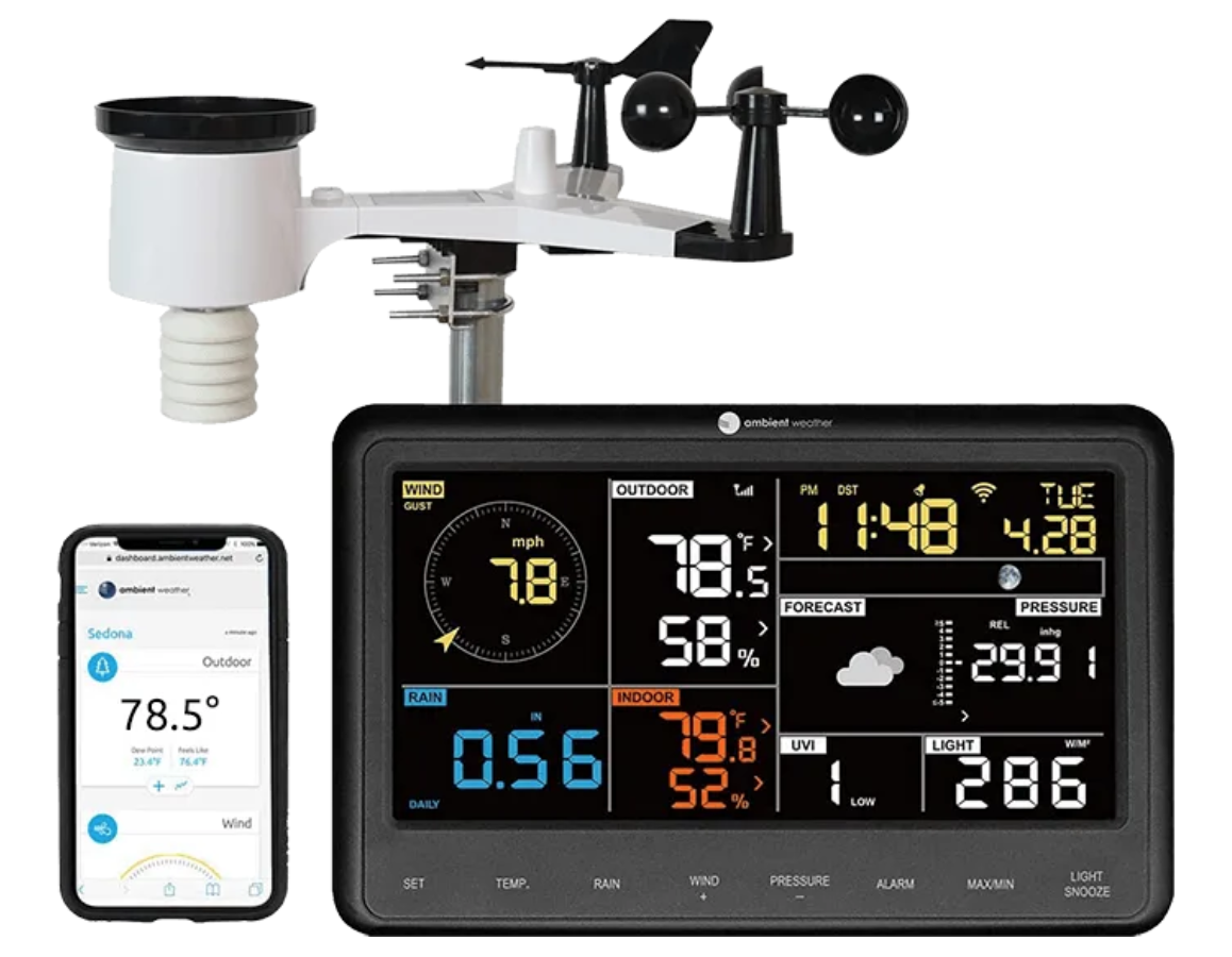 Tracking both indoor and outdoor conditions and outfitted with a full color, easy-to-read LCD display the Ambient, which looks like something you might see the pros using, monitors wind speed, wind direction, rainfall, UV, solar radiation, barometric pressure, indoor/outdoor temperature (F and C), indoor/outdoor humidity, dew point, heat index, wind chill and, somehow, even more. And while it comes with its own handy display, you can also get this flood of data delivered directly to their phone, tablet, laptop or desktop, in an easy-to-parse form, so you always know your home conditions, no matter where you are. And because Ambient knows that weather nerds love community, the device allows you to easily connect your system to the Ambient Weather Network—and Weather Underground, the world’s largest personal weather station network—to share your real-time data and forecasts with like-minded weatherheads. Ambient owners can even leverage their data to build customized weather dashboards that can be shared socially.