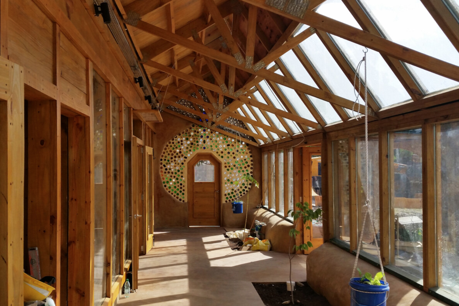 A key part of Earthship architecture is self-sustaining food production. Earthship homes include internal greenhouses, which are used to grow a variety of plants, including fruits and vegetables. Greenhouses also aid in heating and greywater treatment. The combination of direct sunlight, greywater irrigation, and a controlled climate makes it possible to grow healthy food year-round. Some designs also incorporate outdoor garden spaces and even aquaponic systems.