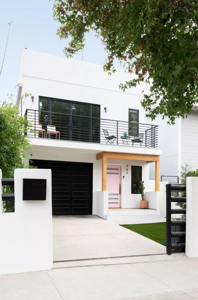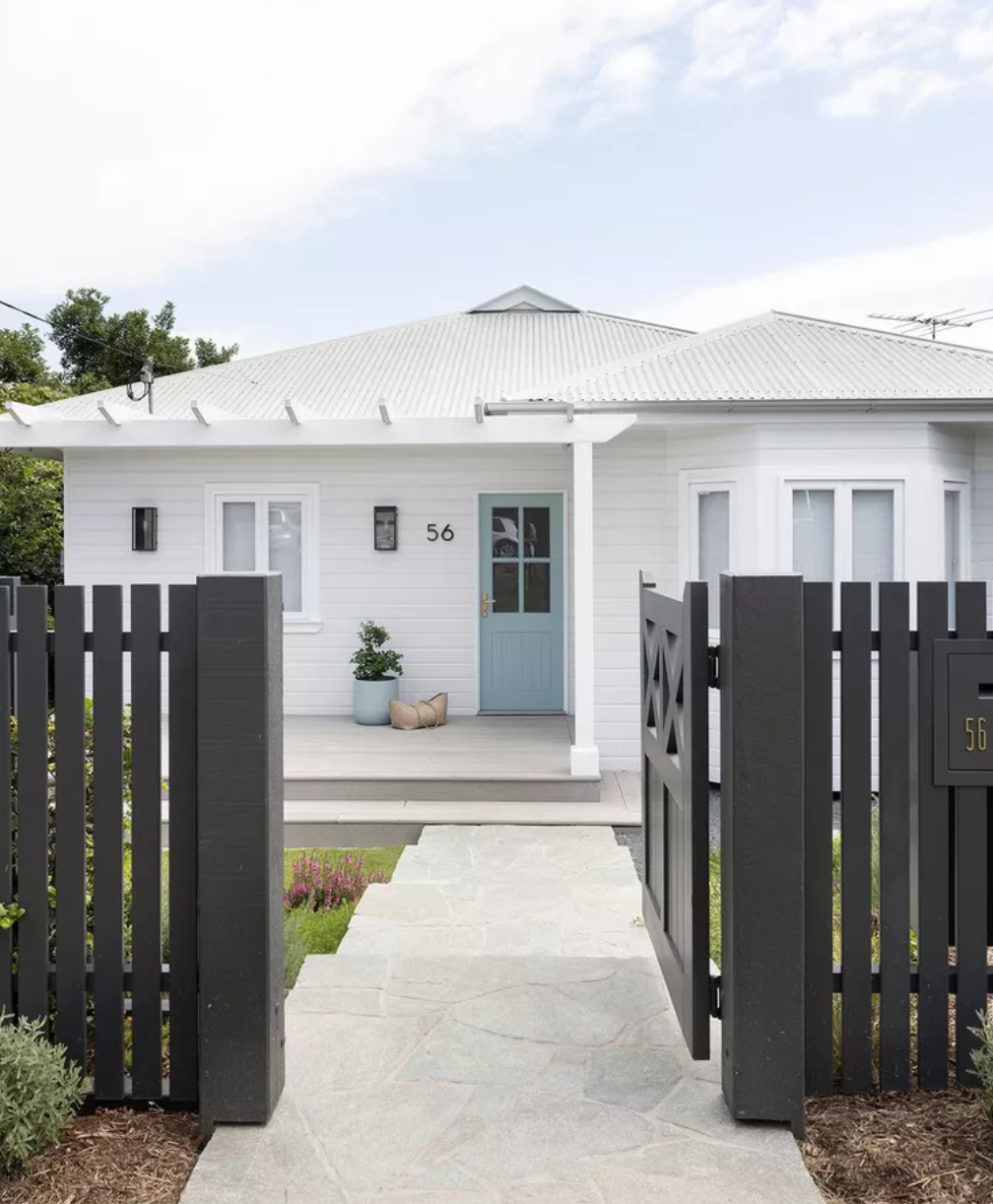 Breezy, light homes typically keep the theme running with a bright white fence, but here’s your sign to try something a little different. A black or charcoal gray fence is instantly more intriguing. Choosing opposite colors offers major contrast, but they play nicely off one another. Ten points for visual interest.