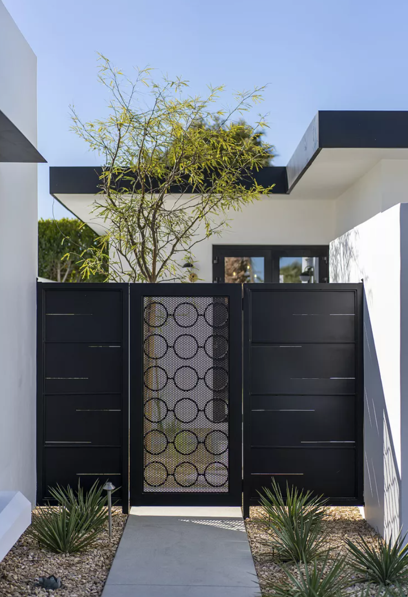 Extra privacy and security don’t have to look dull or intimidating. If you’d prefer your home to retain its chic energy and welcoming exterior, there are plenty of stylish options for gating your driveway and front yard area, such as a sliding fence that matches the color palette of your home.