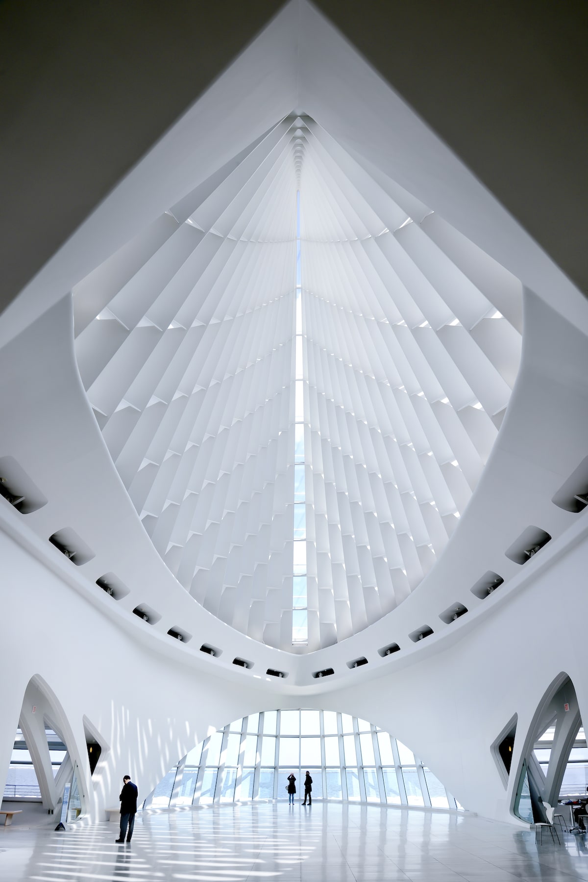 Calatrava’s addition is known for its dramatic wings that act as a shading system. The structure has a wingspan of about 217 feet and moves throughout the day. It is capable of folding when needed and before dangerous weather. Since this building was designed as part of the larger Milwaukee Art Museum, the Quadracci Pavilion is often endearingly called “The Calatrava.”