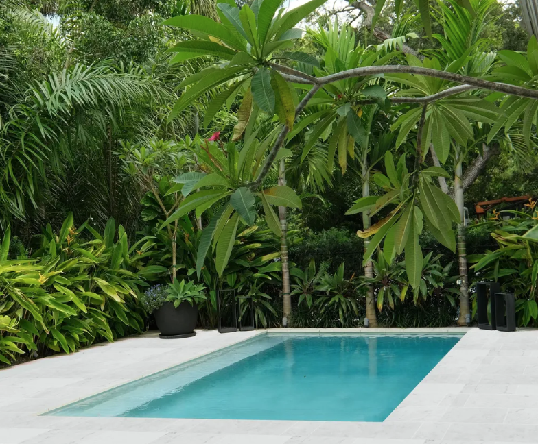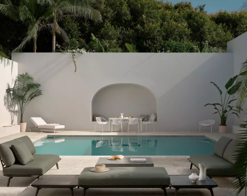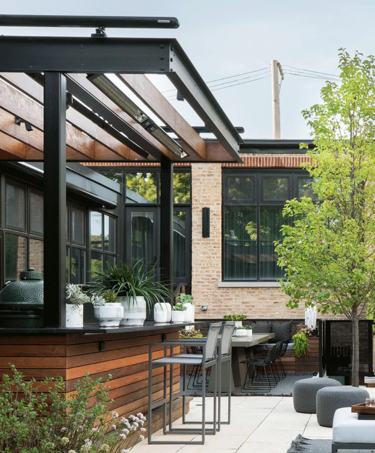 Adding a focal point gives definition to a space and is an invaluable design trick in a small yard. It works by directing the eye to a point you want emphasized, while distracting it from one you don’t. On a smaller scale a focal point can be something like a group of supersized containers, some artfully designed furniture or a piece of eye-catching garden art. On a larger scale it can be more of a design feature like a cool garden bar area, an elegant pergola or a plunge pool. When it comes to planting, think a row of sculptural pleached trees, an ornamental obelisk covered with flowers, or green wall planted up with succulents or ferns. All these ideas are great ways to make a backyard look more expensive too. In summary, it’s anything that is a talking point that distracts from the small space and is a key element in how to make a small backyard look bigger.