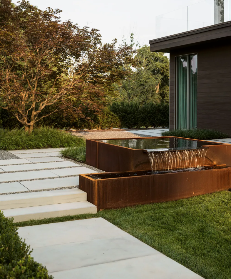 A combination of terraces, decked areas, steps, raised beds with planting and shallow water features can help if you’re looking for ideas how to design a sloping garden to create a stylish multi-level space. Using a series of steps to link different levels allows you to make your way through the yard in a relaxed way and also helps it feel bigger by subtly creating additional areas using the height in the space. ‘Employ varying levels or materials as part of your sloped backyard ideas, but limit transitions to 2-3 levels,’ says Rituparna Simlai. ‘Too many transitions can have the opposite effect by looking cluttered and overwhelming the senses. Thoughtful transitions with well-articulated spaces add depth to the experience, making your backyard space seem much larger.’ Multi-levels yards work well with zoning too. As you arrive at each level it’s the perfect opportunity for positioning seats for relaxing around a fire pit or spreading yoga mats for a workout space.