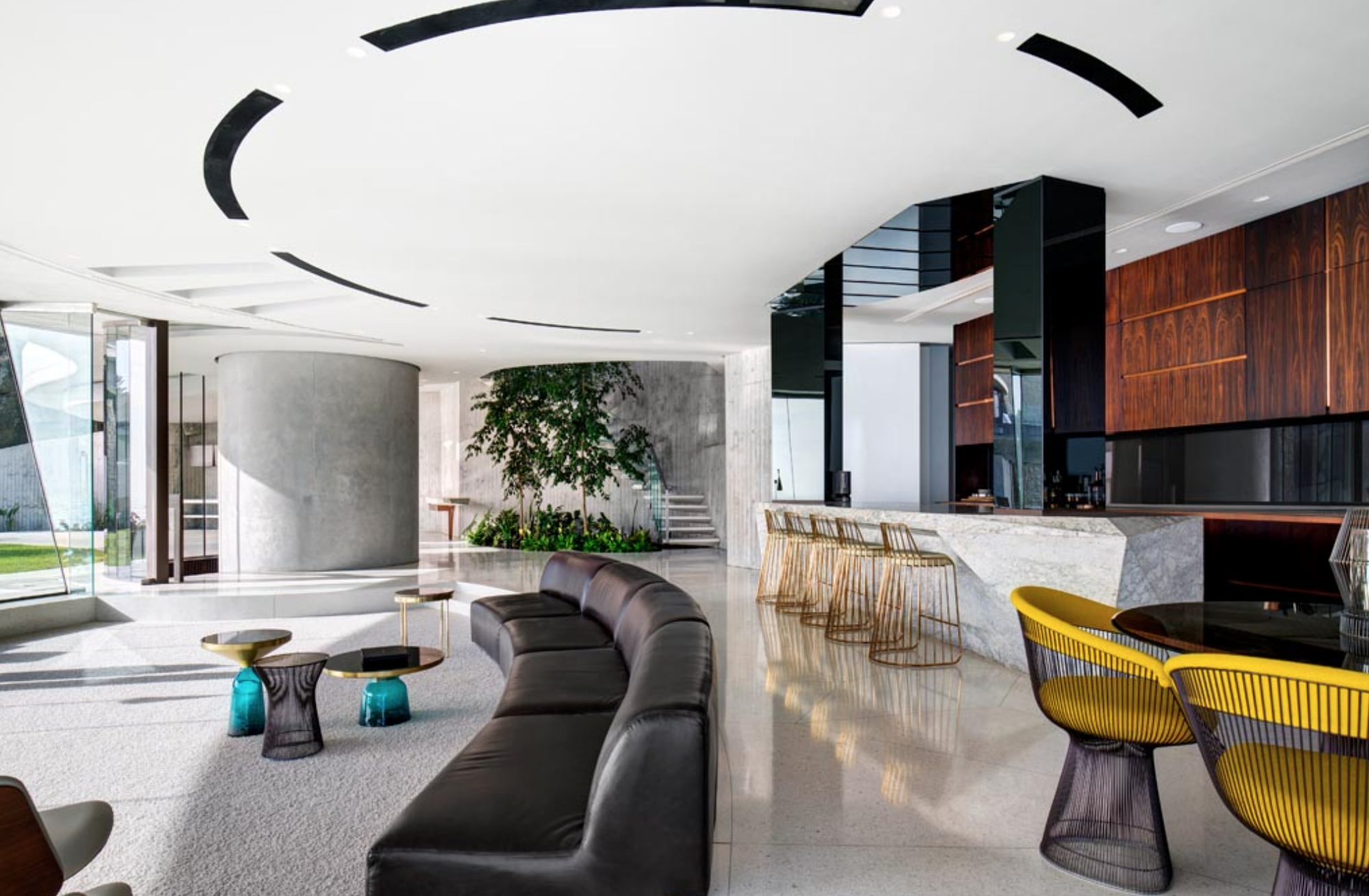 The entertainment pavilion is the property’s main social area, dedicated to hosting guests around the pool. Individuals can relax on designer chairs at the bar or recline on pool loungers on the lawn. This property has proven to be the ideal setting for glamorous music videos and photoshoots and, as mentioned by the architects, is considered one of the largest homes on the Atlantic Seaboard.