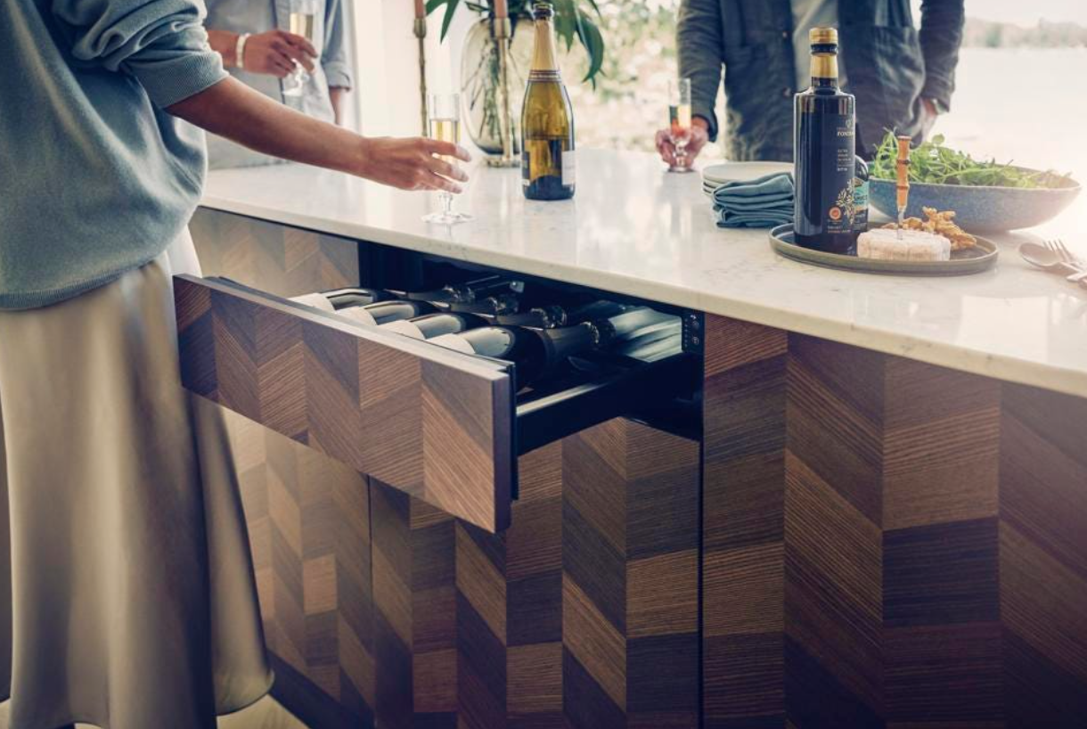 McCabe also sees interest in enhanced refrigeration, a trend abundantly seen at KBIS. This is not a new phenomenon, but higher food prices are increasing the importance of keeping your food – especially health-enhancing produce – fresh longer. “Refrigeration that uses dual compressors and/or technology to preserve the life of perishable contents” is high on McCabe’s client priorities. With people entertaining at home more, particularly outdoors to take advantage of warmer weather, longer daylight hours and reduced Covid exposure risk, outdoor and home bar refrigeration have also been trending. New models are offering cleaner craft ice, in-drawer wine preservation and flexible drawers that convert from freezing to wine chilling to standard refrigeration in the same space.