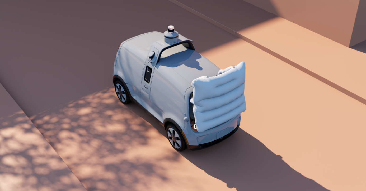 The new “Nuro” bot, which has twice the cargo volume of the previous model, customizable storage and temperature-controlled compartments to keep items warm or cool, is an automotive production-grade vehicle. This means the bot is designed and produced to handle the toils one might expect a delivery vehicle to endure, including weather, potholes, human abuse and long hours on the road. The Nuro delivery bot also contains safety features, which are designed to protect people like pedestrians and cyclists who might encounter the vehicle. The vehicle is equipped with several types of sensors, including cameras, radar, lidar and thermal cameras to provide a 360-degree view that has built-in redundancy in case one fails. One notable item is an exterior airbag that will deploy if the vehicle were to come into contact with a person or other object.