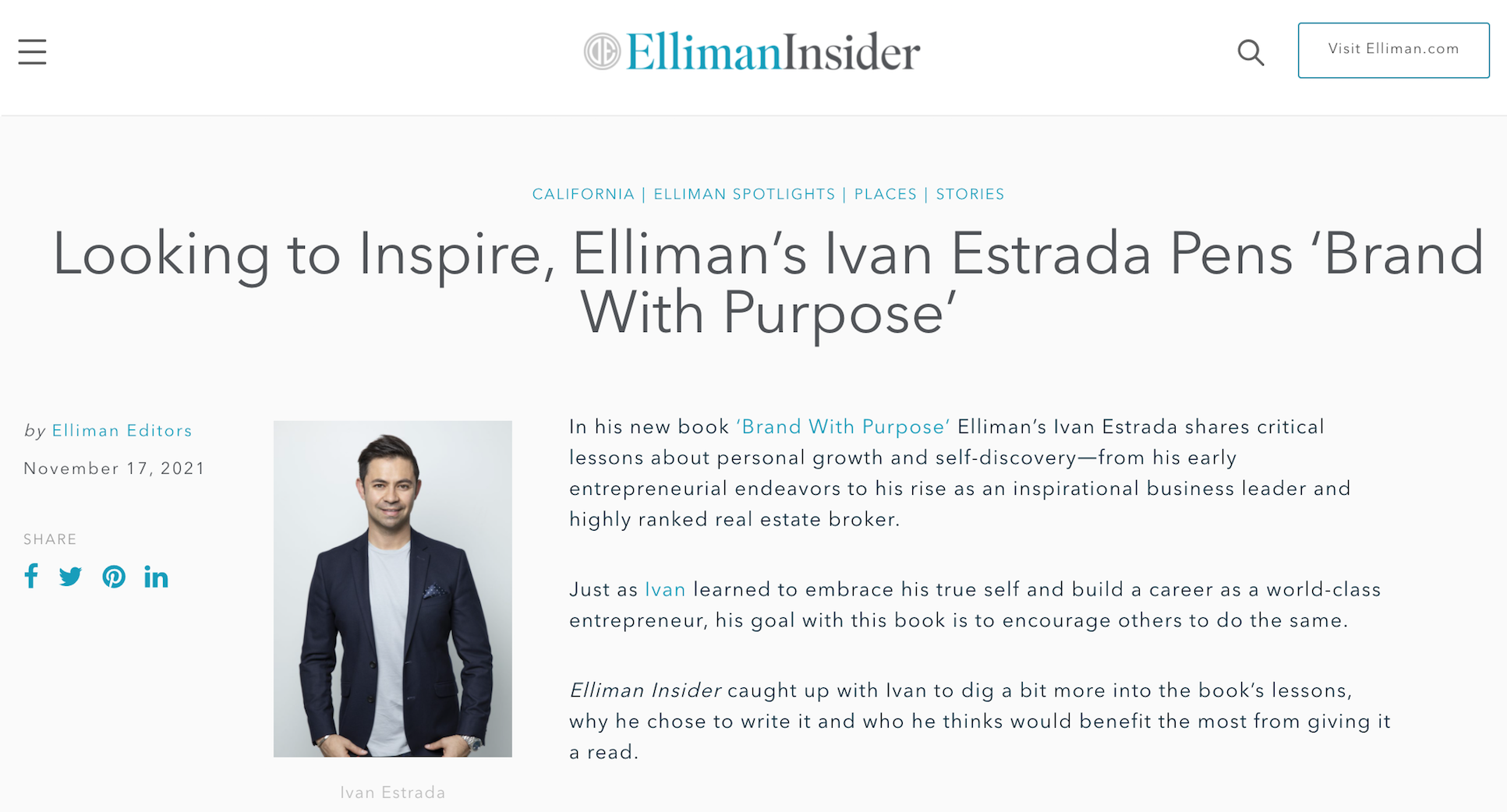 Ivan Estrada was featured on EllimanInsider, an online newsletter magazine by Douglas Elliman. In this article, Ivan shares critical lessons about personal growth and self-discovery―from his early entrepreneurial endeavors to his rise as an inspirational business leader and highly ranked real estate broker.