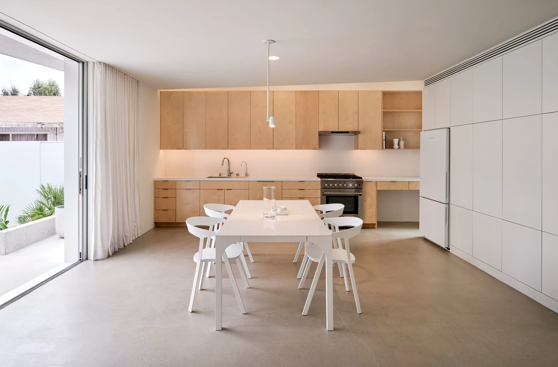 Interior Design: Inside, the use of white and light birch plywood expands the perceived space, creating a bright and inviting interior. The integration of skylights and strategic window placement ensures privacy while bathing the space in natural light, making it an appealing canvas for tenants to personalize.