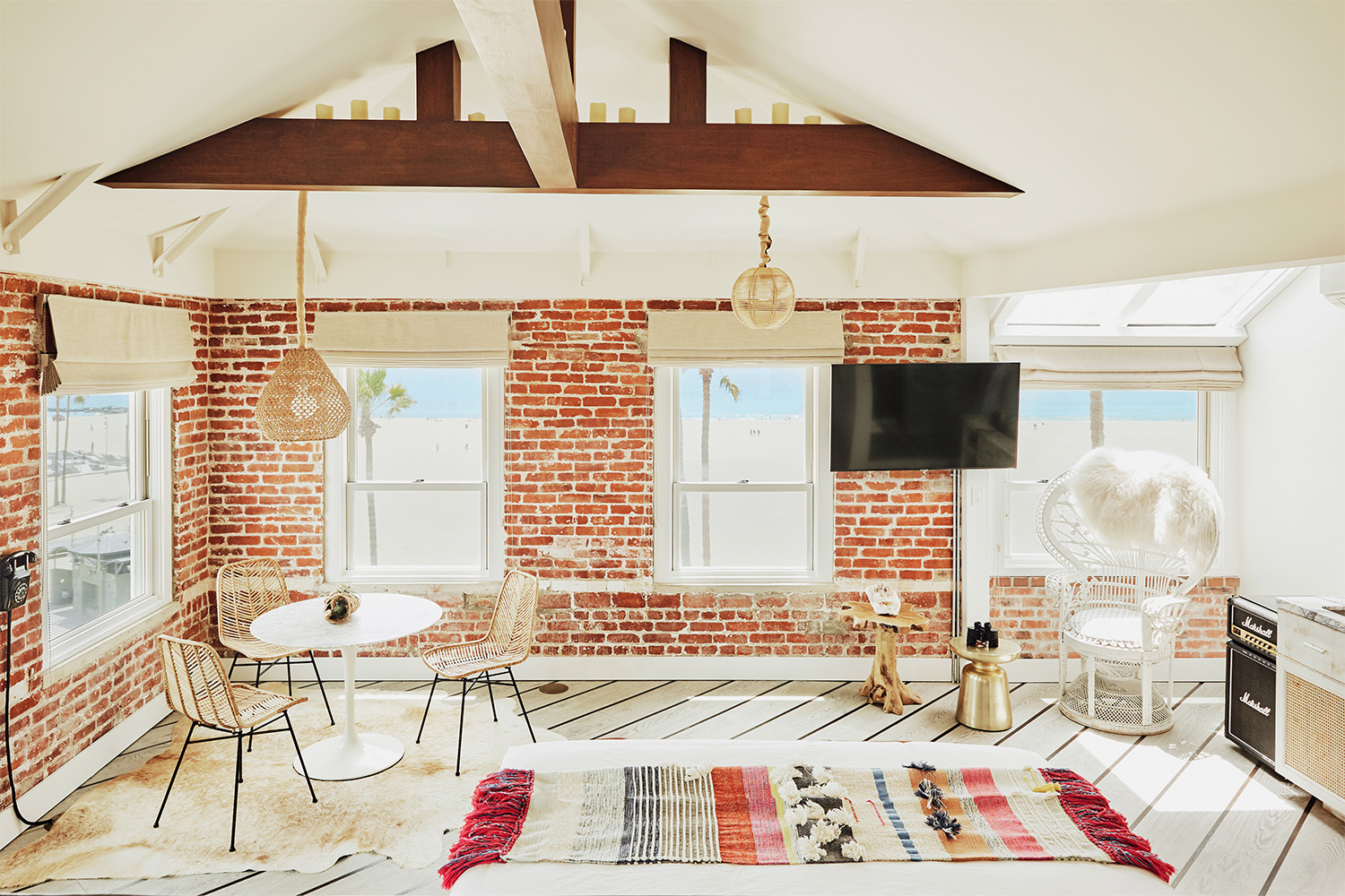Venice is well established as one of the coolest parts of greater Los Angeles, and now it has a hotel that captures the neighborhood’s effortless spirit. This historic 1915 brick building once housed long-term tenants like Charlie Chaplin and Clara Bow, but has been renovated and faithfully restored to give visitors a true Venice beachfront experience. From the lobby’s skateboard wheel mural to each penthouse’s signature aesthetic theme, custom graffiti art and stunning beach views, there’s no better representative of West L.A.’s enduring skate ‘n’ surf culture than this property. Steps from Venice’s beach skate park and the water itself, enjoy programming like beach yoga or bike rentals, then come home and clean up in style — yes, your shower has an ocean view, too.