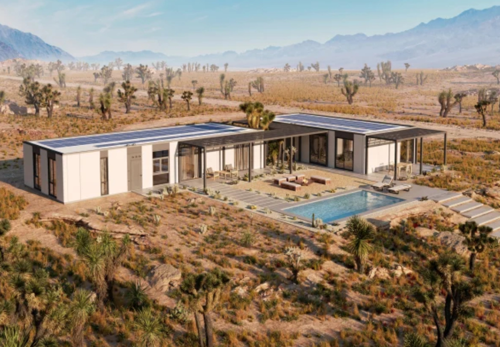 Construction on Mighty Homes’ Desert Hot Springs community, developed by Beverly Hills-based Palari, is already underway, and when complete will feature 20 Mighty Quatro units and 50 traditionally constructed units. Each Mighty Quatro measures 1,176 square feet with two bedrooms, two bathrooms, and a separate ADU. Many will have their own pool. The homes, fabricated in a factory in Monterrey, Mexico and pieced together (via a steel inlay system) on site, are designed to be Net Zero Energy (not an easy task in the desert), thanks to roofs made of solar panels, heat pump systems, which can reduce heating-related energy use by about half, and well-insulated infill panels made from 60 percent recycled resin. Each model has been pre-approved as part of the state’s Department of Housing and Community Development Factory Built Housing (FBH) program.