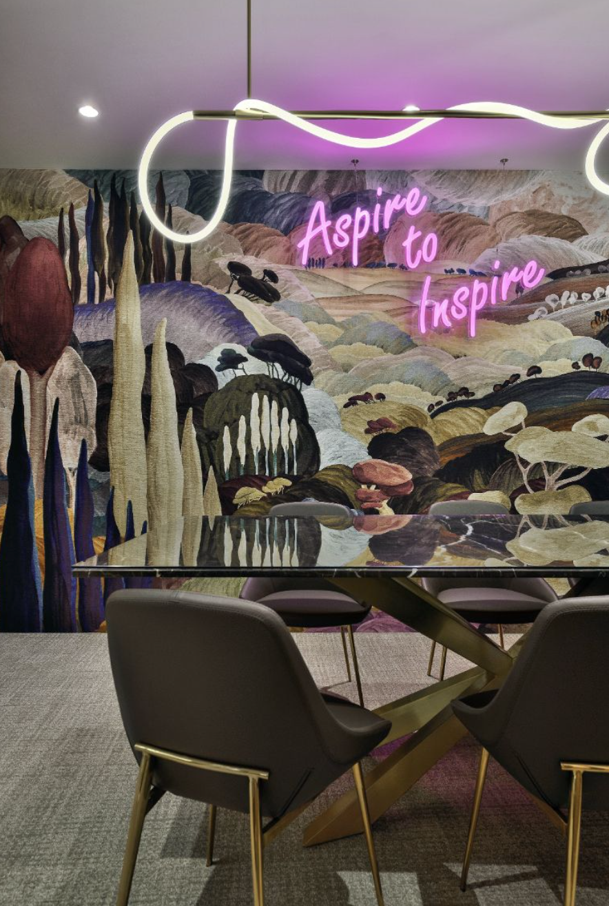 Forget about playing it safe and embrace maximalism—get as creative as you want when designing a home that tells your own personal story. You can achieve a bold look by layering a space with different materials and colors, or introducing interesting patterned fabrics and wall designs in your home. “I think people are looking for excitement in the post-pandemic era. Clients are more willing to explore more adventurous patterns and colors, and ways to make their home feel more vibrant and alive,” says Elaine Lu of Hong Kong-based design studio Lim + Lu. Jeremy Tay, founder and director of Singapore-based firm Prestige Global Designs, agrees. “When executed well, a dark and moody color scheme can result in sophisticated spaces that can really make a powerful impression,” he says.
