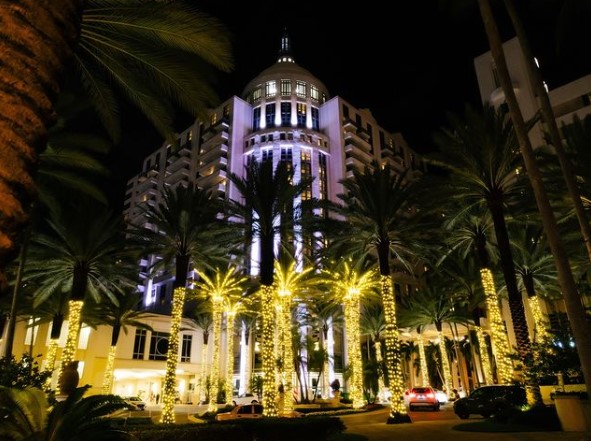 For those looking for a warm place to enjoy Christmas festivities complete with amenities, decorations, food, and, of course, holiday spirits, Loews Miami Beach Hotel is certainly one of the best hotels in the US. This beautiful beach hotel in Miami dazzles with its magnificent decor, which includes palm trees decked with dazzling lights, a huge gold ornament adorned with poinsettias, wreaths, and much more. Moreover, multiple festive activities like live concerts, chef-led baking sessions, and movie screenings are cherries on top. Plus, exquisite holiday dining experiences, such as the Feast of the Seven Fishes at Rao’s Miami Beach, fill the trip with lovely memories.