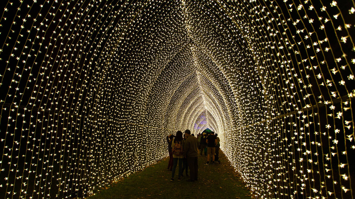 Moonlight Forest has made way for another holiday tradition at the L.A. County Arboretum this year: Lightscape. Uplit trees line the mile-long pathway, with about 10 or so installations spaced out along the way. The Winter Cathedral’s peaked tunnel of lights pinches toward the end to give the effect of a cathedral. The oversized lilies floating in front of the Queen Anne Cottage are serene, the main lawn’s carpet of pulsating lights are energetic and the spheres full of torches in the Fire Garden will have you wishing you could roast the event’s DIY s’mores skits over their open flames.