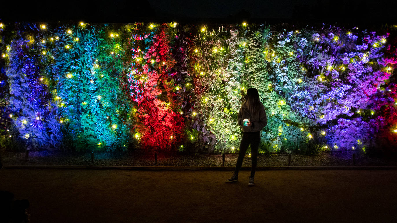 Discovery and wonder have once again inhabited the illuminated installations in Descanso Gardens’ holiday tradition. The botanical garden’s nighttime experience masterfully mixes hands-on art installations with atmospheric, luminescent forests, all against a background of uplit trees and shimmery sound effects. For the 2021 edition, sculptor Tom Fruin’s kaleidoscopic stained-glass–inspired house has now multiplied into an entire village of structures, including one that you can walk through, in the rose garden. HYBYCOZO’s dizzying kaleidoscopic pendants have jumped over to the main lawn alongside stationary polyhedrons, including one you can pose inside of. That does mean, however, that the serpentine Candy-land-like path that used to be there is gone (the color-changing oak grove should still satisfy all of your stomping-on-lights needs, though).