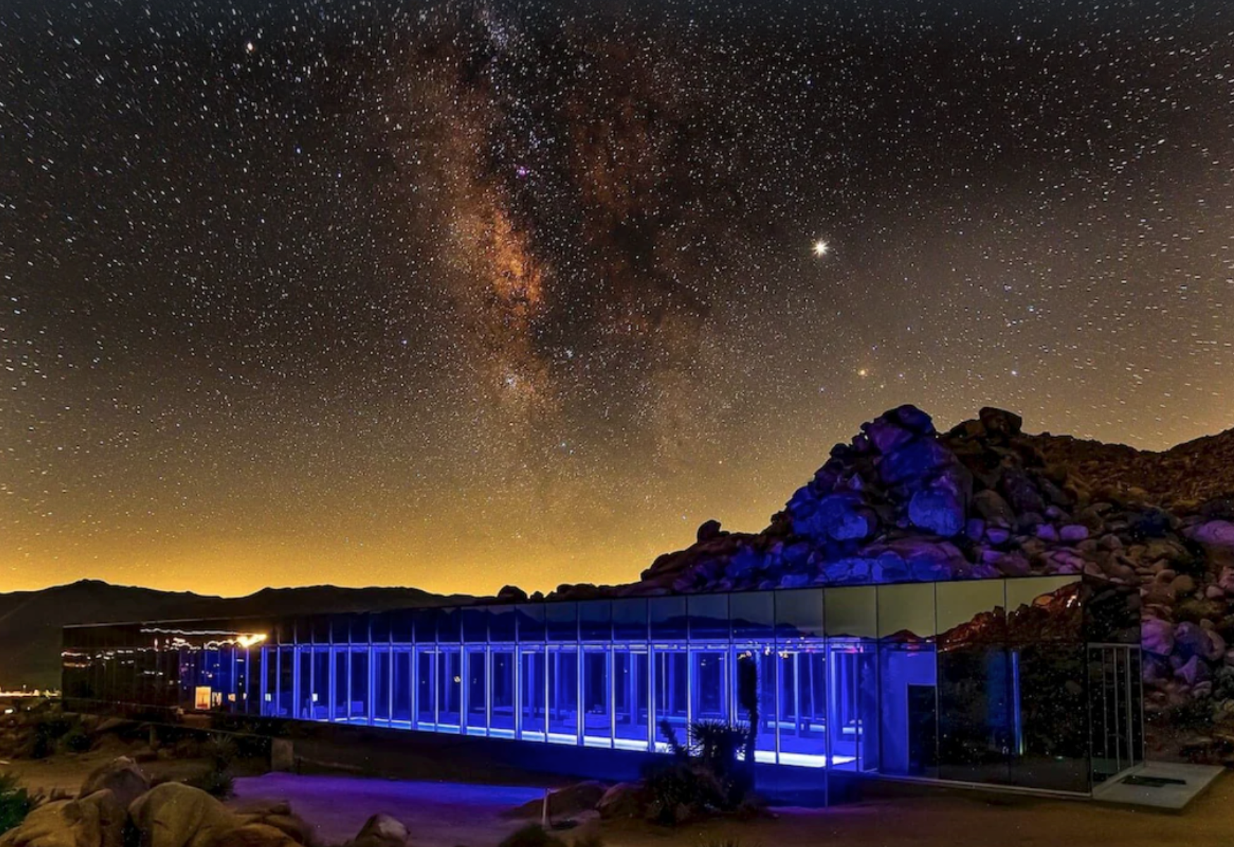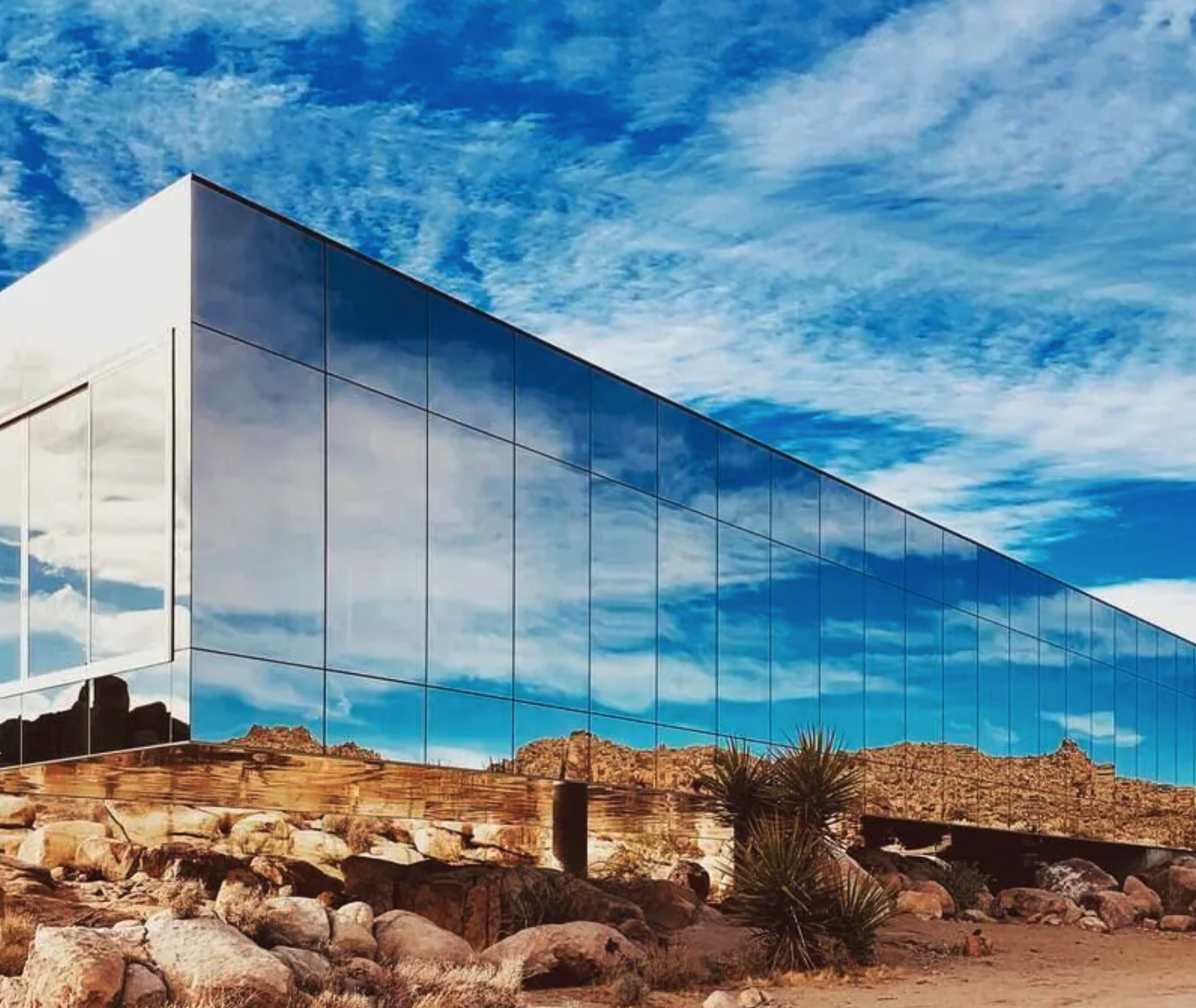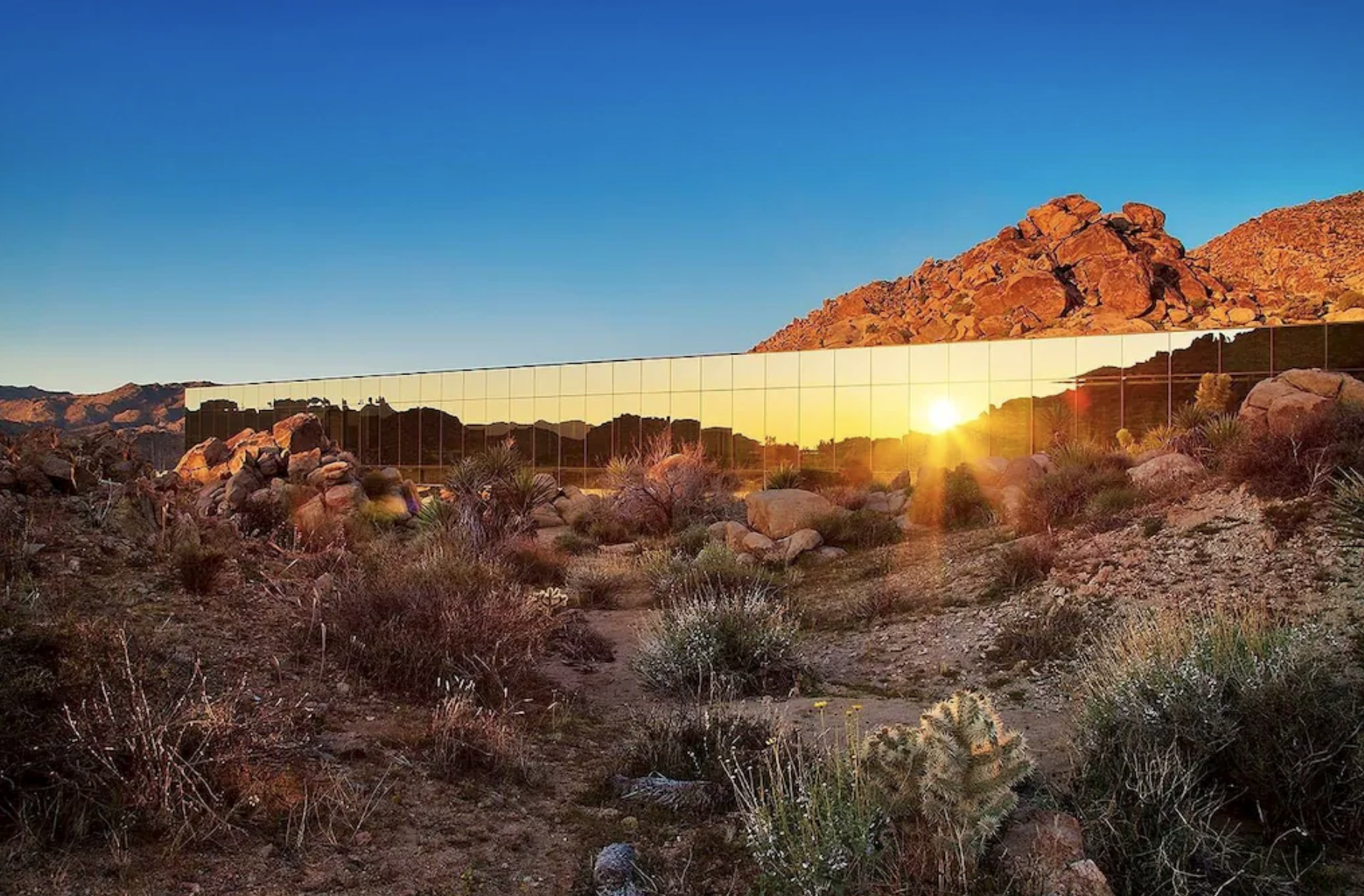 People in glass houses shouldn’t throw stones, but they should throw parties — especially in this glass house that sits outside of Joshua Tree National Park. Known as the Invisible House, the elongated 22-story “horizontal skyscraper” is like a mirror-clad mirage in the desert. This once-in-a-lifetime stay is one of the most sought-after properties in Joshua Tree. It has been seen in design and lifestyle publications like Architectural Digest, Dezeen, TMZ, Business Insider, and Apartment Therapy — here’s why.