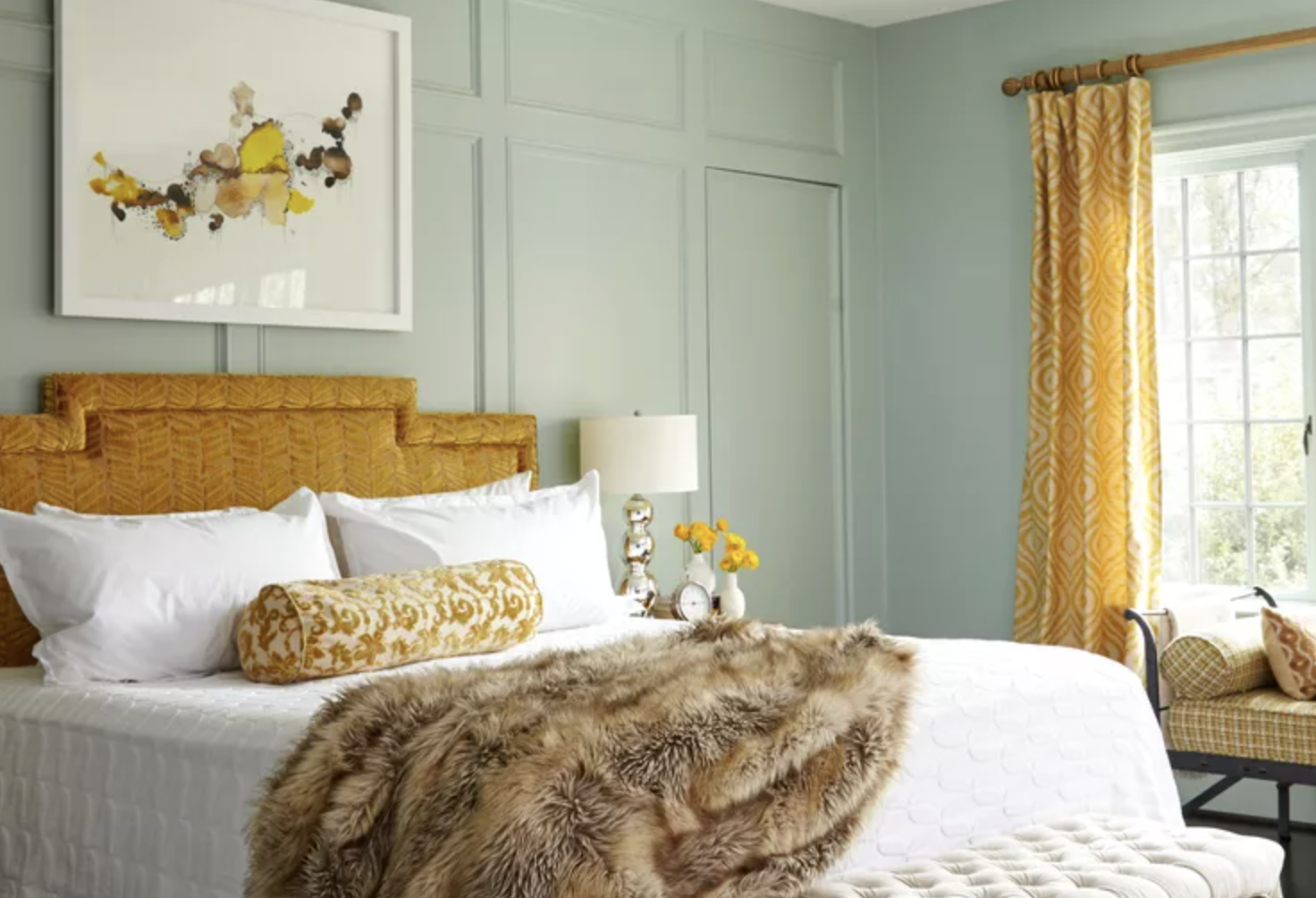 Bedroom paint colors can be subjective, and Magill Henry says colors that work well for some people might not work for others. However, she notes that color does become important if you have trouble sleeping. In that case, she recommends leaning into earth colors such as yellows, browns, and tans to create a relaxing bedroom retreat. “If you are looking to do deeper and want a very serene space, water colors may be for you,” she says. These include deep aubergines, inky indigoes, and greens which give a bedroom a relaxing sense of depth and serenity.