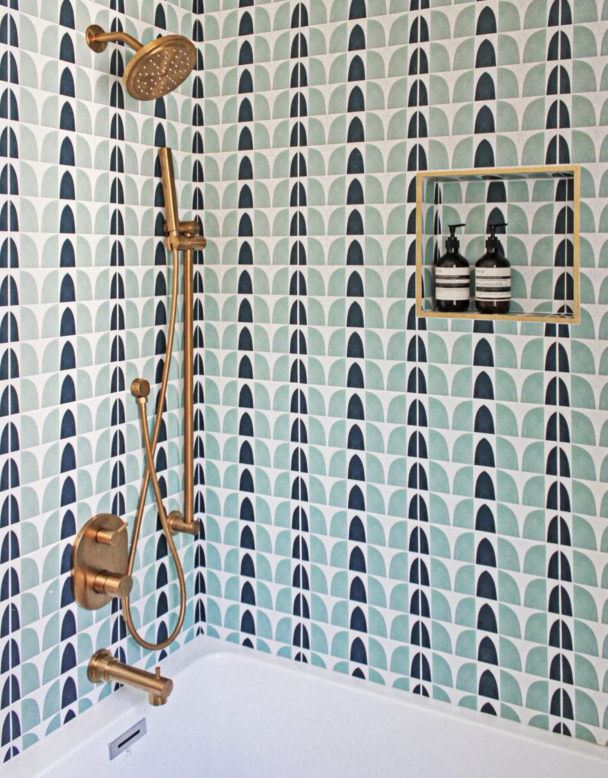 With all the available colors, textures and styles, tile is a great opportunity to take a risk, especially in a playful space like a kids’ bathroom. The geometric tile in this shower and bath combo from @livdendesigns is full of retro charm, and the gold fixtures are like jewels, providing the perfect finishing touch. This Terrazzo tile (called Petals Tile from Livden) is a great eco-friendly choice because it’s made from 65% recycled material!